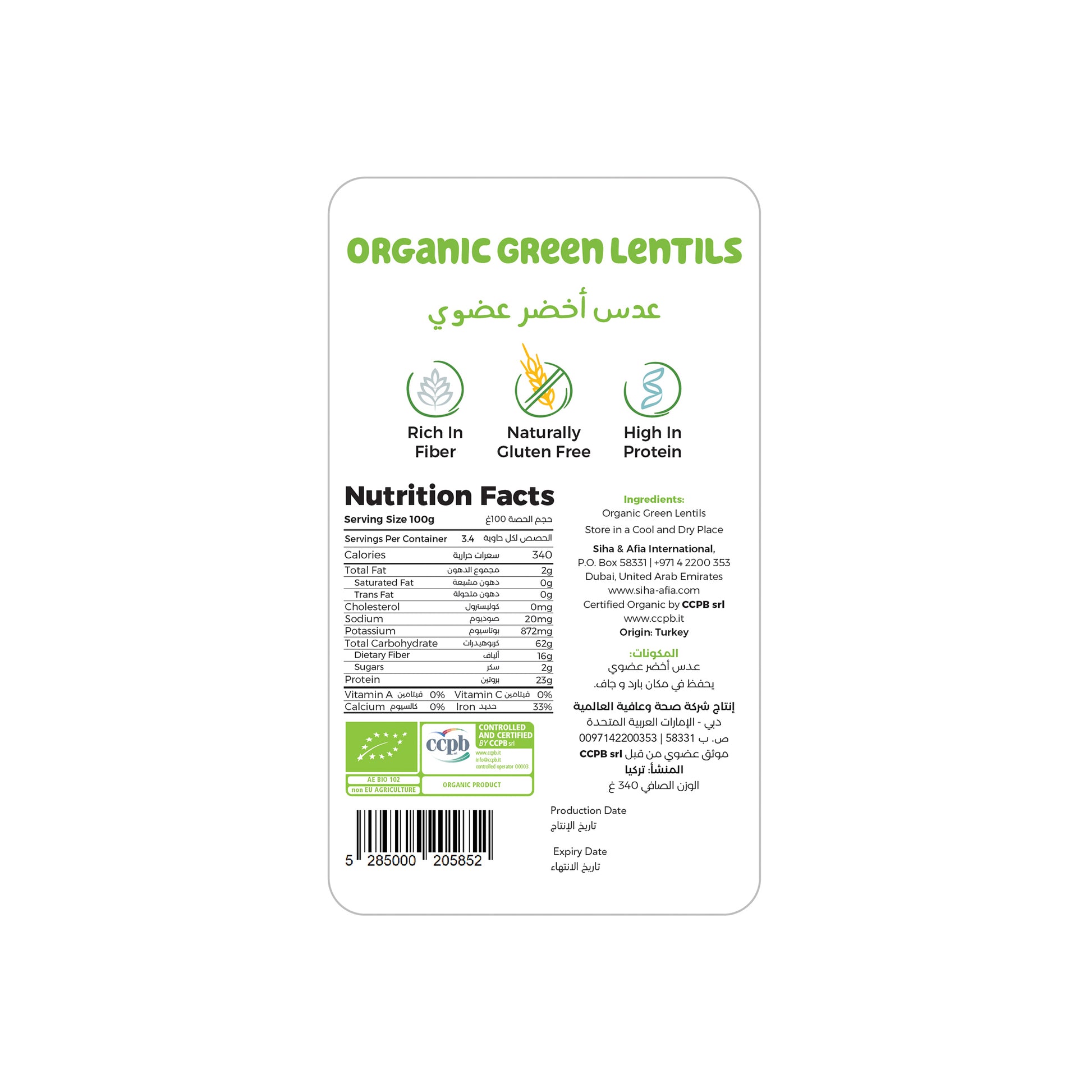 Organic Certification: Guarantees the lentils are grown in compliance with strict organic farming standards.